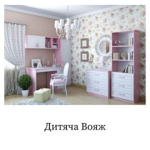 Ніжно-рожевий дитячий комплект меблів Voyage в стилі модерн.