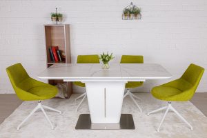 Поворотний стілець Ascona від бренду Nicolas — це оригінальне стильне рішення для сучасного інтер’єру. Глибоке м’яке сидіння і комфортна спинка забезпечують максимально комфортну посадку. За оббивку служить міцна зносостійка тканина, представлена в декількох колірних варіантах. Наповнювач складається з щільного ППУ, який не деформується і тримає форму тривалий час. Витончені металеві ніжки пофарбовані в білий колір. Поворотний механізм дозволяє обертати стілець роблячи його ще більш зручним. Така модель прекрасно доповнить і освіжить простір Вашої кухні, вітальні, а також відмінно підійде для салонів, конференц-залів і шоу-румів.