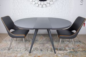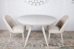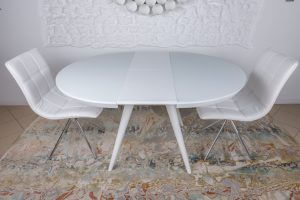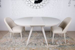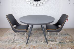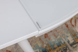 Сучасний розкладний обідній стіл Austin від бренду Nicolas в стилі модерн, прикрасить будь-яку вітальню, кухонну або столову зону. Кругла розкладна стільниця надає практичну можливість вибору між економією простору і кількістю посадкових місць. Зроблена стільниця з матового загартованого скла на основі з МДФ. Скло проходить процедуру шовкографії, в слідстві чого, його поверхня має бархатисту структуру. Ніжки столу виготовлені з нержавіючої сталі та покриті високоякісними барвниками. Вставка, що збільшує стільницю, зроблена з МДФ, що надає столу нотку вишуканості. Металеві деталі розсувного механізму з високоякісних матеріалів розраховані на тривалий термін експлуатації. Стіл-трансформер Austin — відмінне рішення в ситуації, коли необхідна компактність, надійна якість і елегантний дизайн.