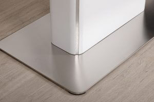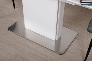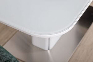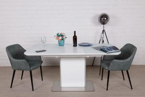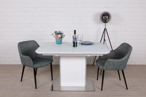 Розкладний стіл Barrie від бренду Nicolas має привабливий сучасний дизайн, тому чудово впишеться в будь-який, навіть незвичайний інтер’єр. Він має досить компактні габарити, але водночас всередині є вставка, за допомогою якої можна легко і швидко збільшити його довжину, що буде дуже зручно в разі зустрічі гостей. Практична стільниця виконана з комбінації гартованого матового скла і МДФ, що є гарантом довгої служби. Ніжка-опора зроблена з МДФ і декорована металевими вставками, які з’єднуються з основою з нержавіючої сталі. Обідній стіл Barrie завдяки своїм формам і лаконічному дизайну, що не перевантажить інтер’єр, а навпаки стане його гармонійним доповненням.