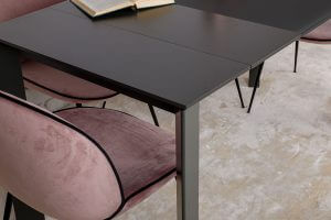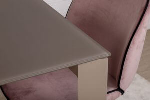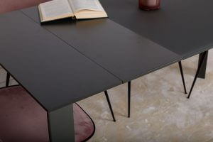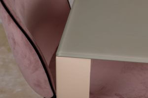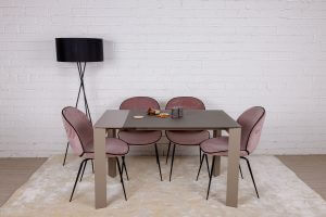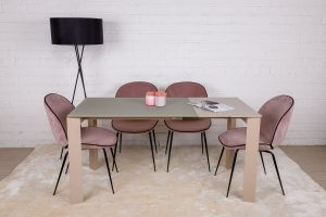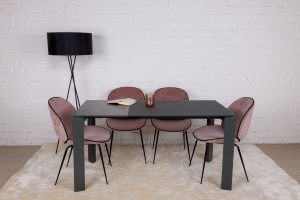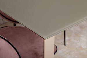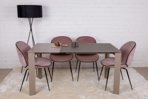 Стильний прямокутний обідній стіл Bristol B від бренду Nicolas має лаконічний дизайн, строгі й стримані лінії. Стільниця виконана із загартованого матового скла і подовжується за допомогою вставок з МДФ. Вона елегантно поєднується з алюмінієвими ніжками, покритими однотонним матовим барвником. При виборі обіднього столу, прямокутна форма є класичним варіантом. З нею легко допускаються різні по дизайну і кольору стільці, що може послужити цікавою ідеєю для інтер’єру.