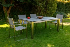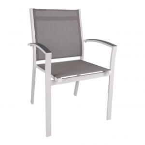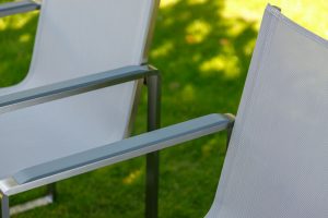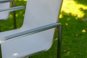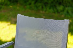 Елегантний, зручний, сучасний стілець Chile від бренду Nicolas. Каркас стільця зроблений з нержавіючої сталі, яка відповідає галузевому стандарту для вуличних меблів. Вона має особливий блиск, стійка до корозії та легка в очищенні. Нержавіюча сталь робить ці стільці масивними та стильними, а додатковий комфорт забезпечують накладки на підлокітники. Сидіння і спинка виконані з сучасної тканини Textilene —сітка індустріального плетіння з поліестерової нитки з вініловим покриттям. Ця тканина не вбирає вологу, пропускає повітря і завдяки цим властивостям швидко просихає. Вона стійка до погодних умов, вологи та сонячних променів. Textilene має гладку, холодну поверхню, а також стильний дизайн плетіння.