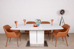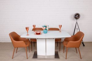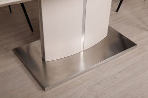 Універсальний обідній розкладний стіл Dallas від бренду Nicolas, стане незамінним елементом вашого інтер’єру. Стільниця з високоякісного загартованого матового скла на основі з МДФ, найпоширенішою і зручною форми, дозволяє отримати максимум корисної площі, навіть при мінімальних загальних габаритах. Розташована на пластині з нержавіючої сталі ніжка, декорована металевими вставками, надає столу вишуканості та стилю. Завдяки розкладному механізму, стіл Dallas може збільшуватися на 40 см. Дана модель столу зроблена з високоякісних матеріалів, тому його надійність і довговічність — гарантована.