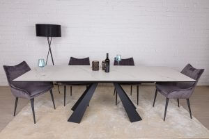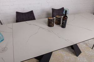Елегантний розкладний стіл Delta від бренду Nicolas поставить завершальну крапку в облаштуванні обідньої зони, а також допоможе завершити інтер’єр, внісши в нього частку естетичності й функціональності. Стільниця виготовлена з кераміки, відрізняється підвищеною стійкістю до подряпин, вологостійкість, практичністю, простотою в догляді та тривалому терміні експлуатації.