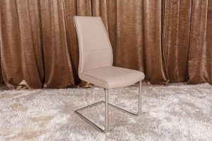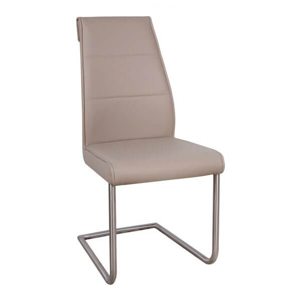 М’який стильний стілець Florida від бренду Nicolas. Оббивка сидіння і спинки — екошкіра в кольорі лате. Екошкіра приємна на дотик, має високу міцність, не викликає алергії, не вбирає неприємні запахи та має антибактеріальні властивості. Спинка стільця має зручний вигин і нахил, що максимально комфортно для розташування. Опора даної моделі зроблена з металу в незвичайній формі. Саме вона підкреслює стильний вигляд виробу. Стілець Florida — це модне рішення, для цінителів комфорту та оригінальності.