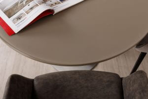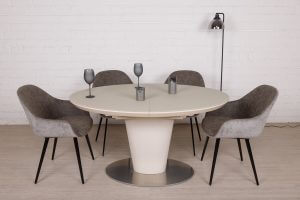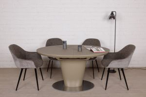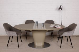Овальний розкладний стіл Georgia від бренду Nicolas у вашому інтер’єрі — ознака елегантності та гарного смаку. Очевидна перевага такого столу полягає в поєднанні місткості й компактності.Georgia — стіл з «секретом». Щоб розкласти його, потрібно розсунути стільницю і дістати додаткові вставки. Так з маленького столика для невеликої сім’ї виходить повноцінний місткий стіл для багатолюдного банкету. Деталі розсувного механізму зроблені з металу, працюють плавно, не вимагаючи від вас особливих зусиль. Стільниця зроблена із загартованого матового скла на базі з МДФ. Загартоване матове скло має високу термостійкість, а МДФ — високу міцність, що є важливими факторами для обіднього столу. Додаткові вставки та підстава столу, яка розташовується на платформі з нержавіючої сталі, так само зроблені з МДФ. Georgia — поєднання високої якості та елегантного дизайну. В інтер’єрі даний стіл буде виглядати гармонійно, не перевантажуючи простір.