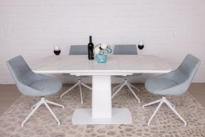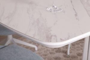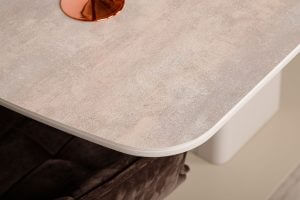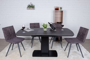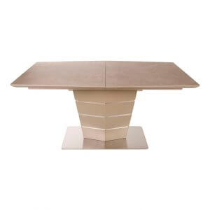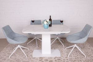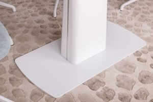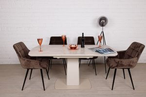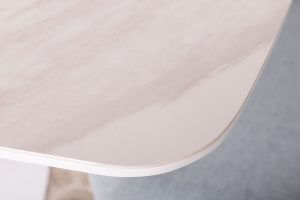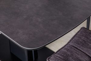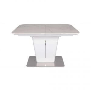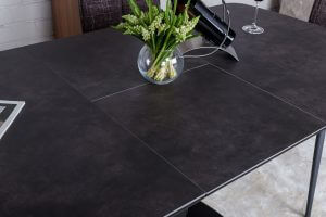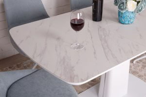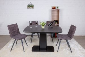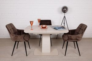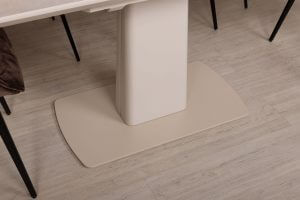 На перший погляд, обідній стіл Maryland від Nicolas простий і лаконічний виріб, проте ця модель не залишить байдужим жодного любителя сучасного стилю в інтер’єрі. Матеріалом стільниці є кераміка, яка якісно оброблена по краях, що виключає ймовірність порізів, бо кути заокруглені. Кераміка має багато переваг у використанні. Це термостійкість, завдяки якій на поверхню можна ставити гарячі предмети, і практичність, тобто таке покриття не боїться води, на ньому не утворюються плями та подряпини. За такою стільницею просто і легко доглядати, досить помити її теплою водою з додаванням мийного засобу і протерти сухою серветкою. Трапецевидна опора столу, з матовими металевими смугами-вставками з боків, виготовлена з МДФ. Вся конструкція стоїть на міцній і важкій платформі з нержавіючої сталі. Її кути заокруглені. Це не заважає ногам, коли сидиш за столом. Якщо до вас прийшли гості, легким рухом ви можете розкласти стіл до 160 см. Механізм досить простий і надійний. Оригінальний і якісний стіл Maryland стане прекрасним доповненням обідньої зони кухні або вітальні, зробить простір стильним.
