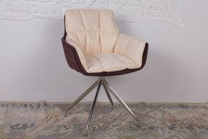 Затишне поворотне крісло Palma від бренду Nicolas прикрасить обідню зону кухні, вітальні та навіть підійде для робочого кабінету. Зручна спинка і комфортне глибоке сидіння з підлокітниками дозволять розслабитися та отримати насолоду від відпочинку. Оббивка — практична зносостійка тканина двох кольорів, або екошкіра. Поверхня сидіння і спинки декорована прошивкою у вигляді квадратів, що надає виробу візуальної м’якості та шарму. Наповнювачем є щільний пінополіуретан, який добре тримає форму, не накопичує пил і прекрасно вентилюється. Хромовані металеві ніжки забезпечують надійність і міцність всієї конструкції. Поворотний механізм надає кріслу ще більшу функціональність, завдяки можливості обертання на 360 градусів. Модель Palma стане відмінним варіантом для облаштування не тільки домашнього інтер’єру, але і ресепшена офісу, готелю чи ресторану.
