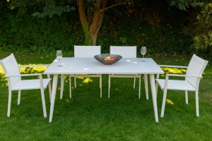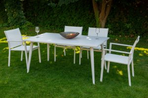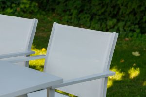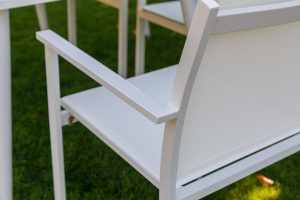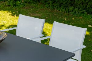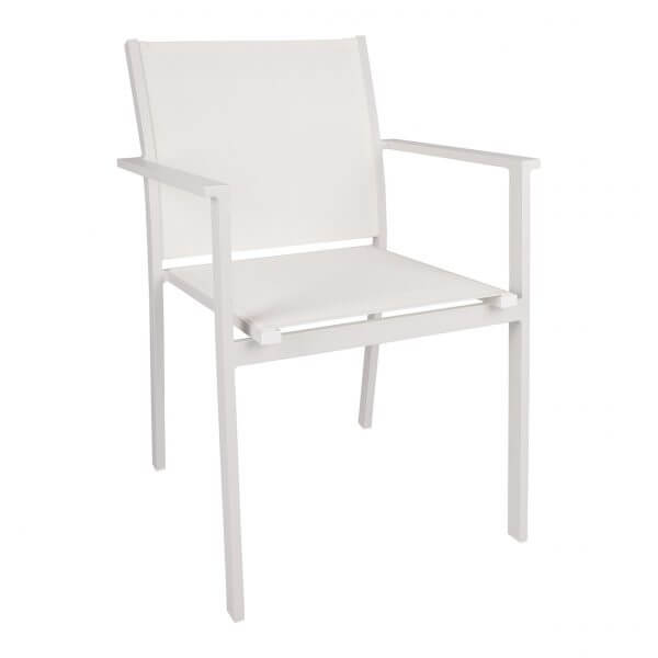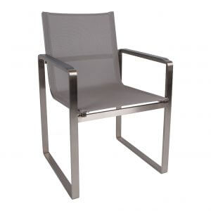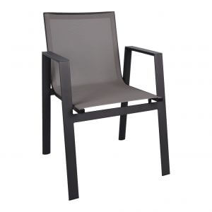Сучасний зручний стілець Panama від бренду Nicolas. Зроблена дана модель з алюмінію, перевагами якого є: довговічність; низька вага, в порівнянні з іншими металевими аналогами; стійкість до перепадів температур; вологості; впливу вітру і прямих сонячних променів; стійкість до корозії. Сидіння і спинка виконані з сучасної тканини Textilene — сітка індустріального плетіння з поліестерової нитки з вініловим покриттям. Ця тканина не вбирає вологу, пропускає повітря і швидко просихає. Вона стійка до погодних умов, вологи та сонячних променів. Textilene має гладку приємну і холодну поверхню, а також стильний дизайн плетіння.