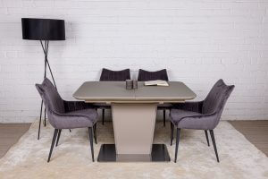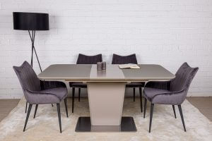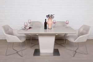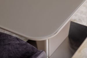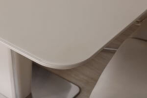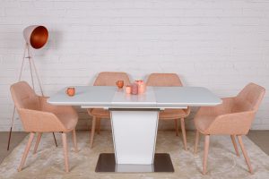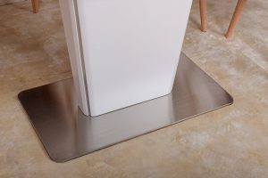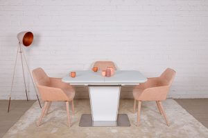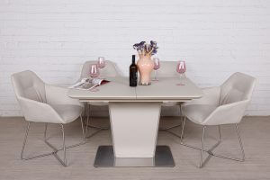 San Francisco — компактний обідній стіл прямокутної форми. Стільниця — загартоване матове скло, опора і вставка на стільниці — пофарбований МДФ, підставка — нержавіюча сталь. Дана модель — відмінний варіант для невеликої сучасної кухні. Завдяки прямокутній формі із закругленими краями він не займає багато місця і його можна зручно розмістити в обідній зоні. Такий стіл не буде захаращувати простір. Він так само має розсувну конструкцію, яка дозволяє збільшувати його розмір на 40 см. Компактність і багатофункціональність — його основні переваги. Дизайн обіднього столу San Francisco лаконічний і ненав’язливий і відмінно буде поєднуватися з будь-яким інтер’єром.