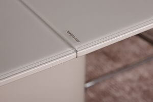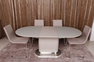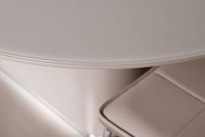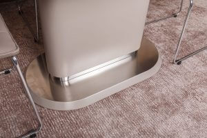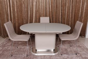 Овальний розсувний стіл Seattle від бренду Nicolas виглядає елегантно і стильно. Зроблений з високоякісних матеріалів, які гармонійно поєднуються. Стільниця з МДФ і загартованого матового скла візуально додає приміщенню легкості. Незвичайною індивідуальності столу надають вставні елементи стільниці з фарбованого МДФ і опорна конструкція незвичайної форми. Розсувний механізм дозволяє в будь-який момент збільшити площу стільниці до великих розмірів і організувати дружню трапезу, яка дозволить зібратися разом всій родині та буде сприяти гармонізації в будинку. Такий стіл створить атмосферу затишку і стане фаворит вашої кухонних меблів.