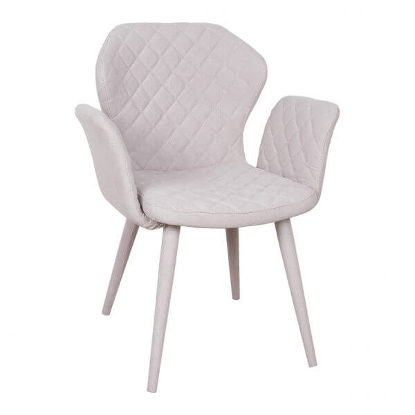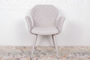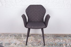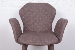 М’яке елегантне крісло Valencia від бренду Nicolas — комфортна модель з оригінальною закругленою спинкою і декоративним геометричним рядком в ромбик. Додаткову зручність забезпечують прямокутні підлокітники. Матеріал оббивки — міцна і надійна зносостійка тканина. Наповнювач — щільний поліуретан, який відмінно зберігає форму, не притягує і не накопичує пил, прекрасно вентилюється та абсолютно безпечний. Стійкі ніжки виготовлені з металу та обтягнуті тканиною в тон оббивки сидіння і спинки. Ця модель може використовуватися не тільки в домашньому інтер’єрі, але і в ресторанах, кафе, готелях, шоу-румах і салонах.