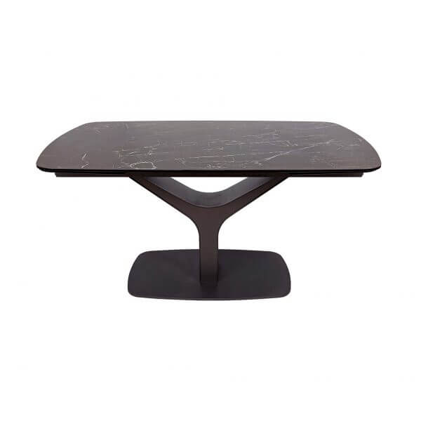 Розкладний обідній стіл Vulcan від бренду Nicolas стане відмінним рішенням для інтер’єру кухні або їдальні в стилі модерн. Стільниця виконана з кераміки, поверхня матова, надає моделі ефектний дизайн і комфорт. Одним з основних її переваг є підвищена стійкість до подряпин і стирання. Вона не вбирає вологу, не потребує хімічного чищення і стійка до агресивних розчинів. Легко очищається звичайними засобами для миття посуду, не реагує на різку зміну температур. Важко придумати міцний матеріал для поверхні обіднього столу, який був би краще кераміки. Керамічна стільниця — завжди красиво, гігієнічно і функціонально! Завдяки надійному розсувному механізму, площу стільниці можна збільшити. Досить потягнути за краї з обох сторін і витягти додаткові секції, підняти та укласти в один рівень зі стільницею. Каркас, виконаний з металу, являє собою оригінальну міцну конструкцію, що надає виробу стильний і неповторний вигляд.