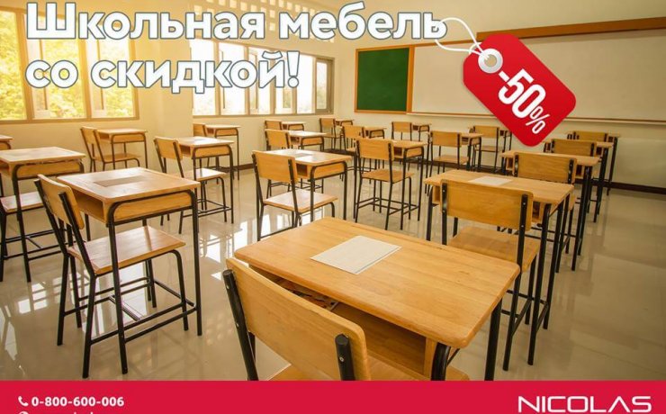-50% на всю школьную мебель Ваши малыши идут в 1-й класс? В аудитории нужна новая мебель? Nicolas позаботился обо всех поколениях! Эксклюзивно для родителей города Херсона, Николаева и областей, наша компания делает НЕДЕТСКУЮ скидку! Мы стараемся для Вас ♥ Ждём по адресу: г. Херсон, пр-т 200 лет Херсона, 2 г. Николаев, пр-т Центральный,